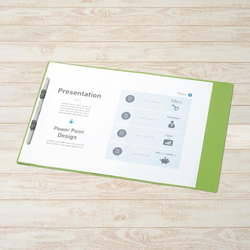 PP製なので汚れにくく、耐久性の高いフラットファイル。A3書類を二つ折りでスッキリ収納