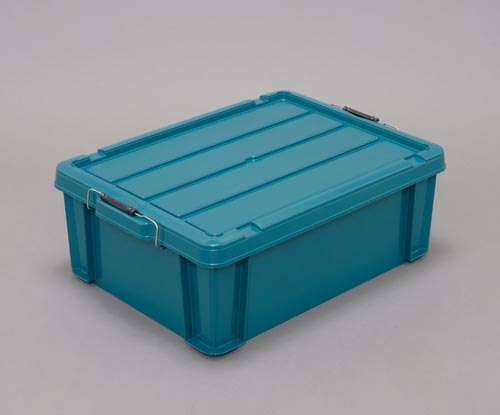 金属バックル仕様のフタ付きコンテナです。バックルの成形部分に凸面が付いているため指に引っかかりやすく、重い荷物を入れて持ち運ぶ際にも手が痛くならないよう、持ち手部分に厚みを持たせました。