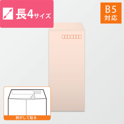 B5(4つ折)が入る大きさの長4号封筒。使いやすいピンクです。