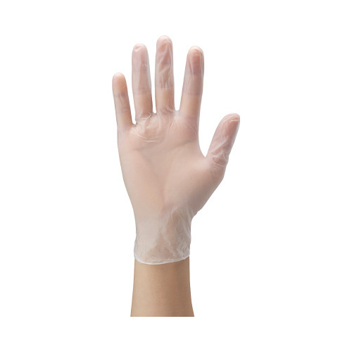 手によくフィットし、指先の感覚を活かせる厚み約0.05mmの使い捨て塩化ビニール手袋(パウダーフリー)