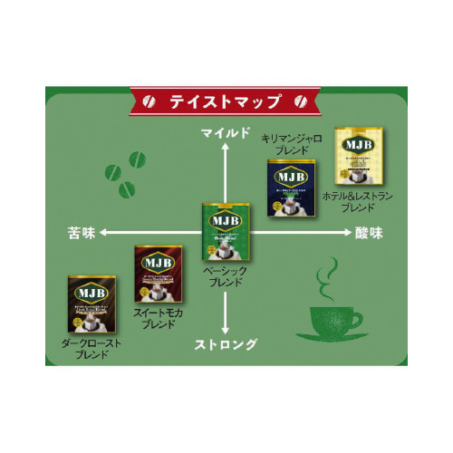 アラビカ豆を中心にブレンドした5種類の味わいを楽しめる「MJB」のドリップコーヒーバラエティパックです。