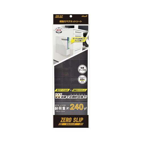 ※磁力面に特殊滑り止めコーティング加工をしてズレに強い。粘着付の強力マグネットシートです。切らずに便利なカット済みタイプ。●長さ/300mm●幅/100mm●厚さ/1.2mm●仕様/カットタイプ●1片サイズ/25×25mm●材質/異方性マグネット●機能/特殊滑り止めコーティング加工●粘着有無/有●保持荷重目安/約240g(1片使用時)●入数/1セット(48片入×5枚)●単位/1セット(5枚)