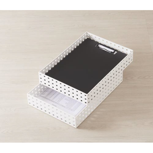A4サイズ対応でさまざまな物が入ります!A4クリアファイル、バインダー、紙製ファイル、2穴ファイル、角2封筒(封を閉じた状態)。段違いでスタッキング可能。丈夫な素材ABS樹脂私用、足ゴム付き。