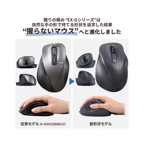 整形外科医との共同開発により自然な手の形のまま使える、握らないマウス“EX-G”シリーズ。マウスを動かす際にかかる身体の負担を極限まで抑えたBluetooth(R)5ボタンマウスです。