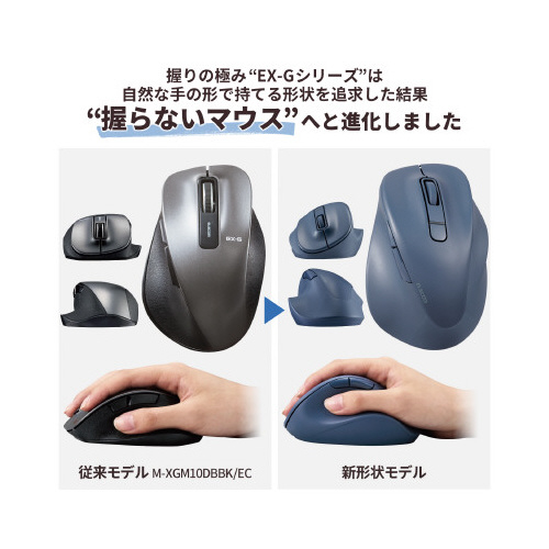 整形外科医との共同開発により自然な手の形のまま使える、握らないマウス“EX-G”シリーズ。マウスを動かす際にかかる身体の負担を極限まで抑えたBluetooth(R)5ボタンマウスです。