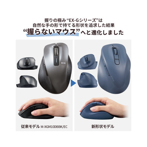 整形外科医との共同開発により自然な手の形のまま使える、握らないマウス“EX-G”シリーズ。マウスを動かす際にかかる身体の負担を極限まで抑えたBluetooth(R)5ボタンマウスです。