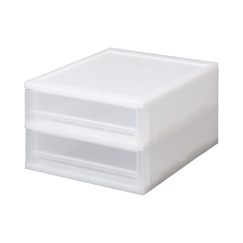 シャープでスッキリしたフォルムな収納!サイズの違う引き出しを積み重ねてもピッタリ収まります!A4クリアファイルが入る浅型2段引き出しケースで滑り止め付!キャビネットやワイヤーラックでの備品収納に最適!