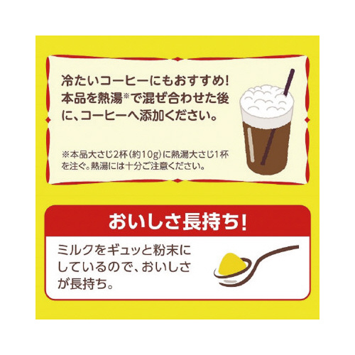 カフェで飲むふわふわ泡のカフラテを家庭で手軽に楽しめるカフェスタイルのクリープです。クリープは日本国内で唯一、牛乳から生まれた成分だけでできたクリーミングパウダーです。