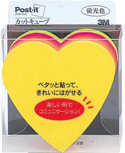 くり返し貼ったりはがしたりできるポストイット通常粘着製品です。1パッドにカラフルな5色のハート形が各色45枚ずつ入っています。