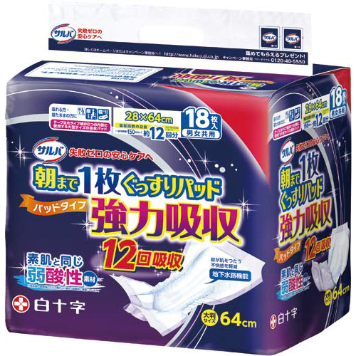 約12回分の排尿量を吸収します。素肌と同じ“弱酸性素材”を吸収体表面とパルプ層に使用。モラさず装着できるカンタン装着つまみが、すばやく確実にあてられモレを防止します。