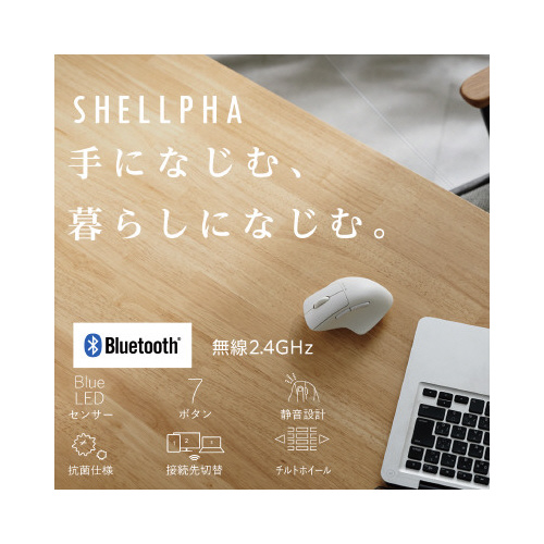 手になじむ、暮らしになじむ。生活空間に溶け込むマウス“SHELLPHA(シェルファ)”です。