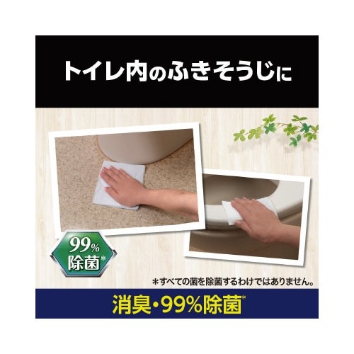 汚れはもちろん、手強い尿臭・便臭も1枚でスッキリ!洗浄液たっぷりの1枚で広い面積まで拭きやすい!