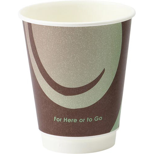 紙製スリーブを装着しエアー層を形成した、スペシャリティ飲料向けの断熱紙コップです。黒と緑のおしゃれなマーブル模様。3柄アソート。