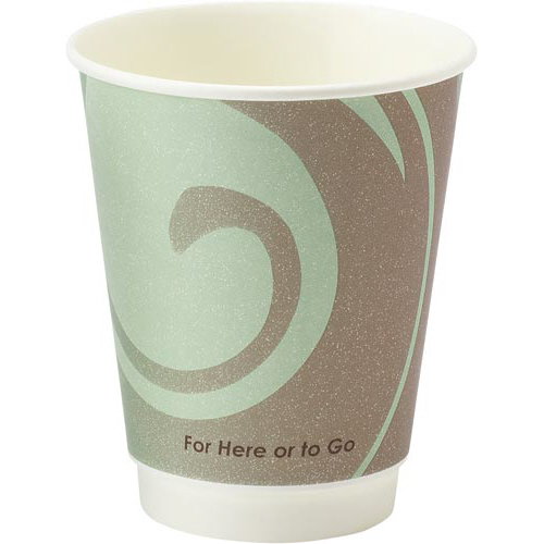 紙製スリーブを装着しエアー層を形成した、スペシャリティ飲料向けの断熱紙コップです。黒と緑のおしゃれなマーブル模様。3柄アソート。