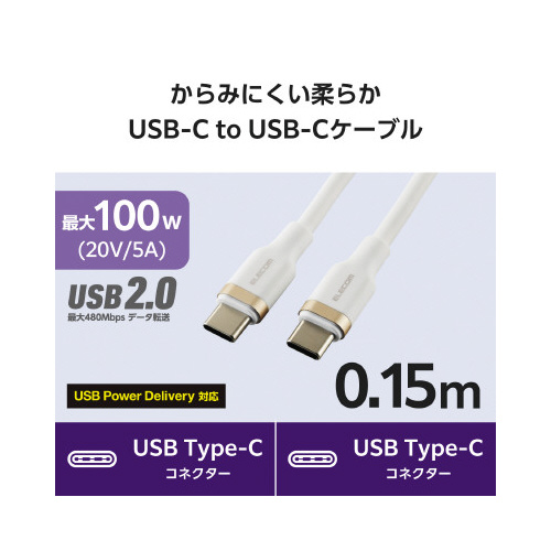 スマートフォンもパソコンも、これ1本で高速充電!USB2.0、USBPowerDelivery(最大100W)対応のUSBType-C(TM)-USBType-Cケーブルです。