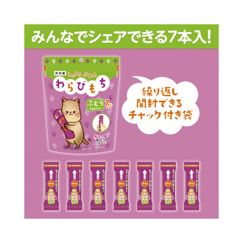 巨峰果汁を使用した、もっちりぷるんとした食感のわらびもちです。巨峰の濃厚な風味と爽やかな酸味をお楽しみください。