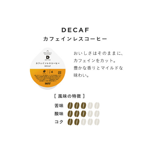 UCC DRIP POD専用カプセルが可愛くなって新登場!コーヒー本来のコクや香り、おいしさはそのままに、カフェインをカットしました。妊婦の方だけでなく、夜コーヒーを飲むと眠れない方にもおすすめです。
