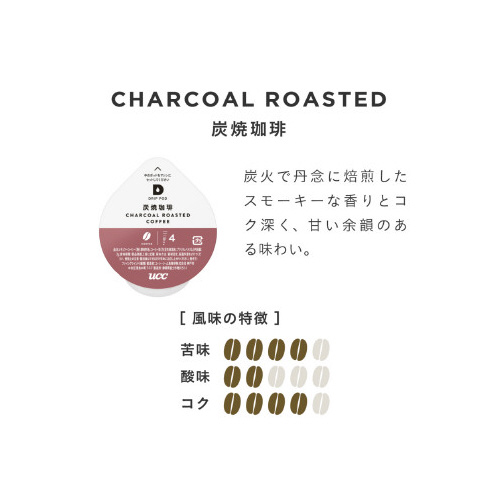 UCCDRIPPOD専用カプセルが可愛くなって新登場!炭火で丹念に焙煎したスモーキーな香りとコク深い味わいが簡単にお楽しみいただけます。苦めのコーヒーがお好きな方におすすめです。