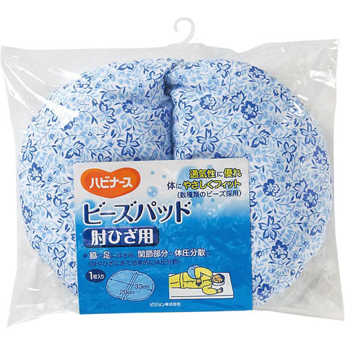 大きさの違うビーズの働きで、身体にフィットしやすく、体圧の分散を促します。手足の関節をやさしく保護。全身の体圧分散だけでは保護できない部位です。中央のステッチ部分をあててご使用ください。