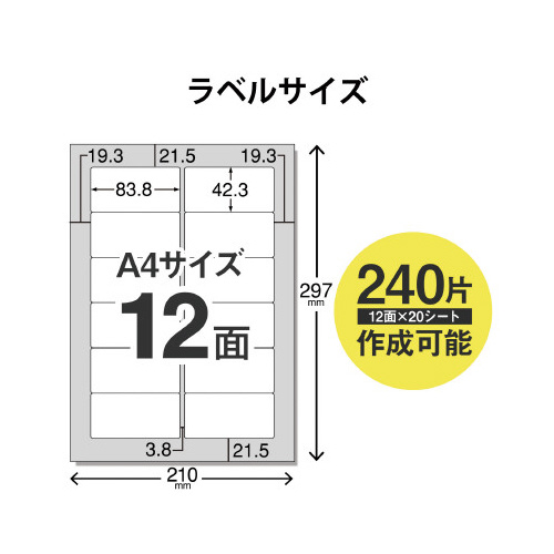 宛名・表示ラベル 速貼タイプ 12面 角丸 20枚