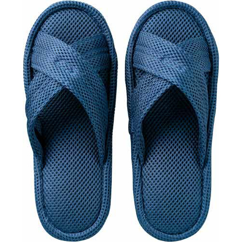 さらっと肌触りの良いメッシュ素材のクロスバンドタイプのスリッパです。側面からも風が通り抜けるので、長時間社内でのデスクワークが続く方やホテル・旅館などの共用スリッパにもおススメです。
