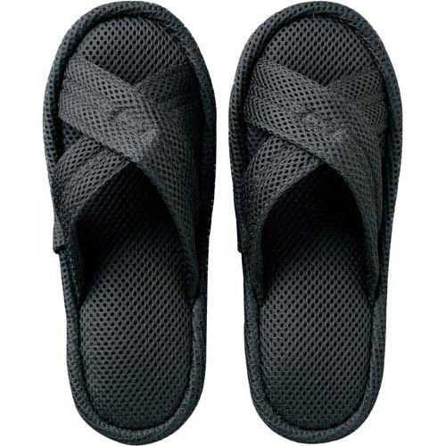 さらっと肌触りの良いメッシュ素材のクロスバンドタイプのスリッパです。側面からも風が通り抜けるので、長時間社内でのデスクワークが続く方やホテル・旅館などの共用スリッパにもおススメです。