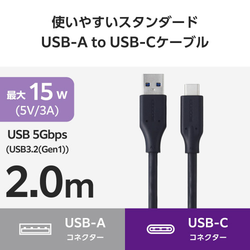 スマートフォンやタブレットの充電やデータ転送に!USB 5Gbps(USB3.2(Gen1))に対応。