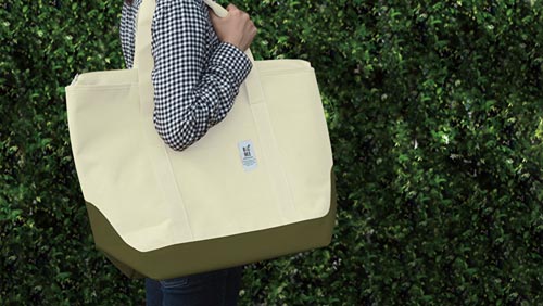 保冷が出来るトートバッグ。底が広くたっぷり入るからお買い物にも最適。機能的かつシンプルな色味とデザインなので、普段使いにぴったり。