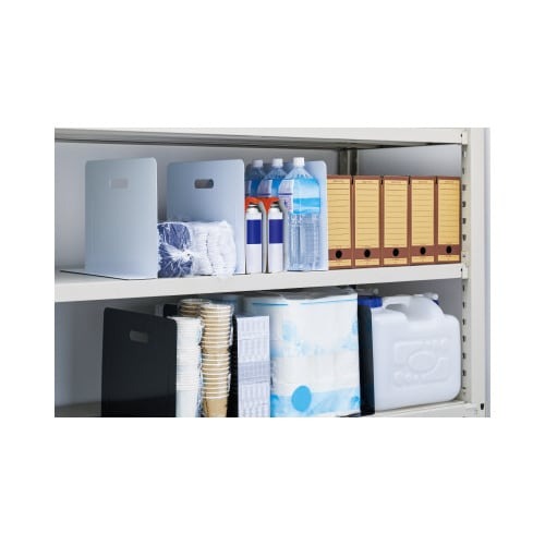 キャビネットの奥行きに対応するスーパーワイドタイプのブックエンド。