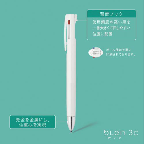 濃くなめらかなエマルジョンインクの「ブレンシリーズ」0.7mmの3色ボールペン。低重心で疲れにくくオフィスでの事務作業にもお勧めです。筆記振動を制御した機能でブレずにストレスフリーな書き味を実現。