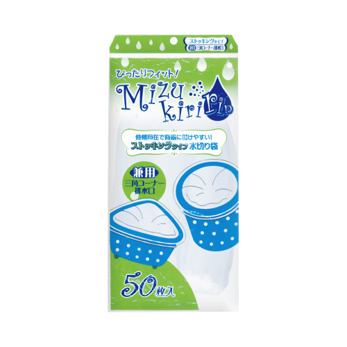 伸縮自在で容器につけやすいストッキングタイプの水切り袋。網目の細かいストッキングタイプなので小さなゴミまで逃しません。三角コーナー・排水口用。