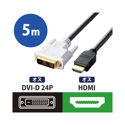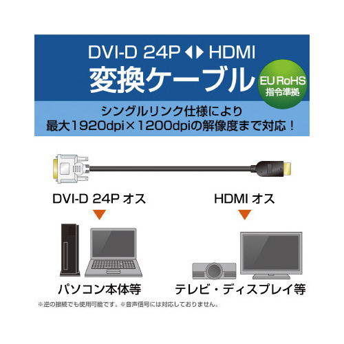 シングルリンク専用で、1920dpi×1200dpiまでの解像度に対応。DVI端子を装備したパソコンと、HDMI端子を装備したテレビなどを接続するのに最適なHDMI-DVI変換ケーブル。