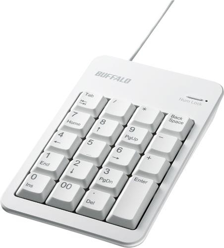 USB2.0ハブ(2ポート)搭載のテンキーボード。E×celに最適な「Tabキー」と「00キー」を搭載。本体を滑りにくくする幅広ラバーフットを搭載。パソコンに挿すだけですぐ使える。