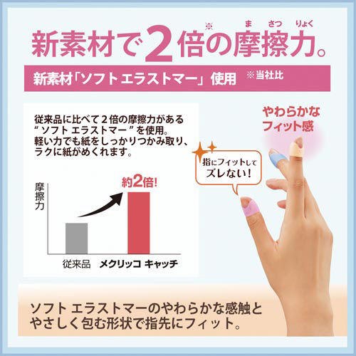 新素材ソフトエラストマーで2倍の摩擦力!(メーカー比)指にやさしくフィットし、つけたままパソコンやスマホも操作しやすい。新素材・新形状指サック!