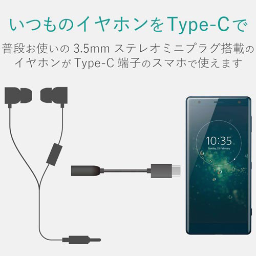 USBType-C端子搭載スマートフォン/タブレットで、いつものイヤホン・ヘッドホンが使える。USBType-C端子を3.5mmステレオミニ端子に変換できる変換ケーブル。
