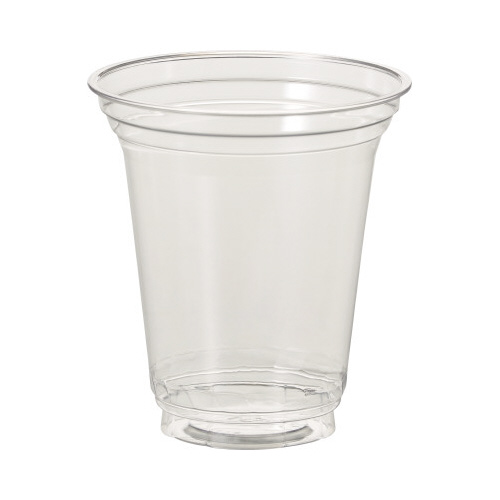 樹脂の中間層に再生PETを使用し、地球資源の持続可能な活用を促す環境対応型クリアーカップ。カフェなどで人気フォルムの98口径型国内生産品です。