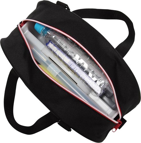 ●セット内容/バッグ・ショルダーベルト・画筆(ナイロン画筆2本組6号丸・12号丸)・筆ケース・パレット・筆洗(4槽式)・スポンジ・サクラマット水彩絵の具(5ml×12色)※キャップは回して開けるタイプです