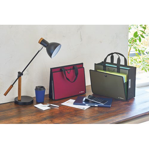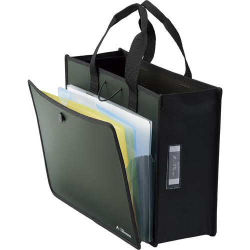 折りたたみ式のP.P.製ツールバッグ。書類整理に便利なジャバラポケット付き。