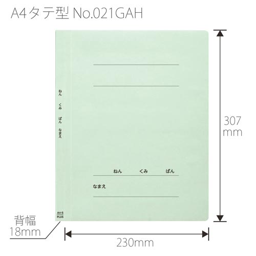ひらがなで「ねん・くみ・ばん・なまえ」が印刷された、低学年向けのフラットファイル。迷わず書けて、きれいに揃う。