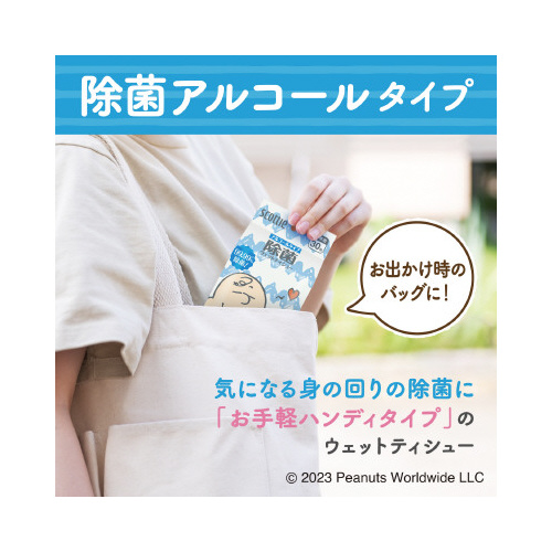 大人から子どもまで人気のスヌーピーデザインの除菌アルコールタイプ。お子さまの身のまわりやおもちゃの除菌、汚れ落としにもおすすめ。持ち運びに便利な携帯タイプ。