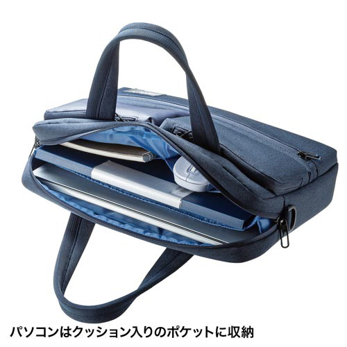 3つのフロントポケットが特徴の軽くて便利なカジュアルPCバッグ。
