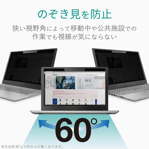 移動中やオフィスでの周りからの視線をしっかりガード。簡単に取り外しできるマグネットタイプののぞき見防止フィルター。