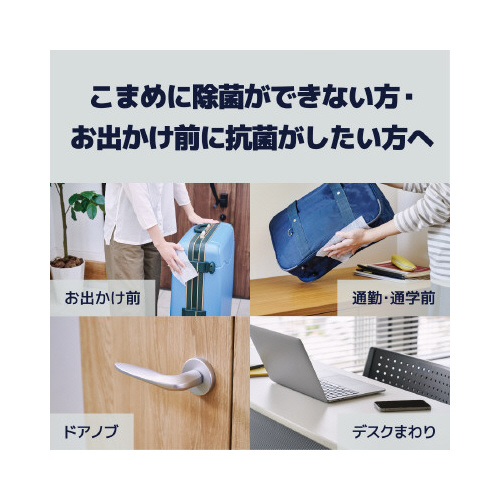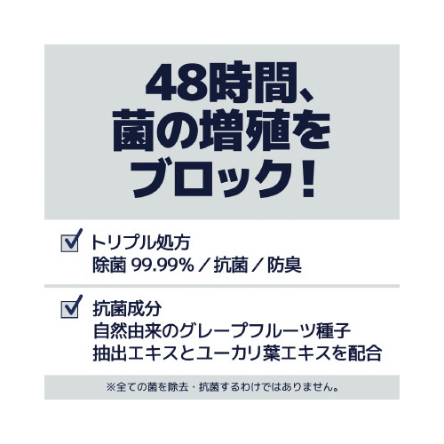 片手で使いやすいボックスタイプです。当社独自のトリプル処方。「除菌」「抗菌」「防臭」機能付き。除菌だけでなく、抗菌もしたいときにお使いください。