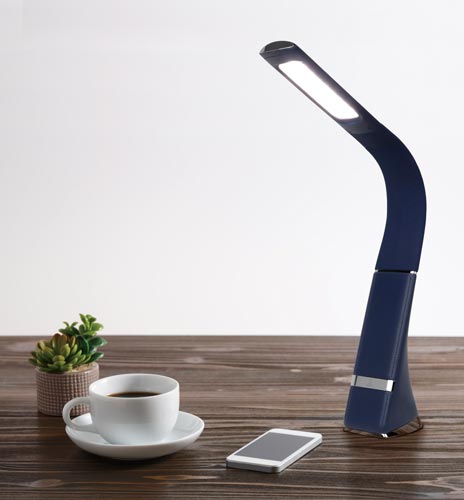 インテリア性のあるレザー調のLEDデスクライト。フレキシブルアームで照明角度は自由に調節できます。高性能LED採用、5000-6000K冷光効果。タッチスイッチ、3段階調光機能。AC/USB対応。