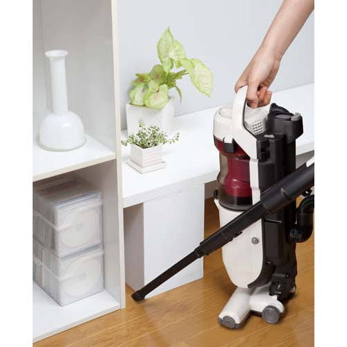 ハンドル部は、ボタンを押すと本体からスポッと抜けて、狭いすき間や高い場所もラクラクお掃除できます!ダブル分離方式で、強力パワーが持続!「抗菌ダストボックス」で清潔