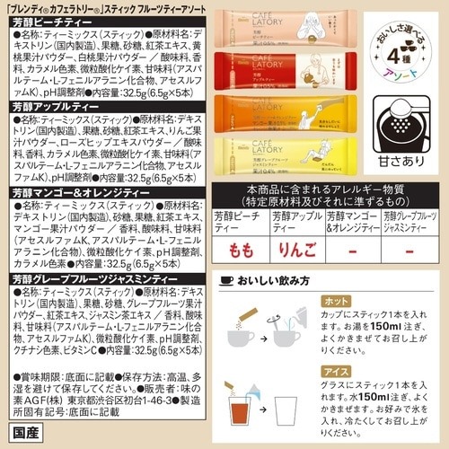 ●アソート内容/芳醇ピーチティー、芳醇アップルティー、芳醇マスカット&グレープティー、芳醇マンゴー&オレンジティー×各5本
