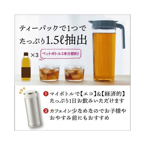 ●特徴/お湯出し:1.5Lの沸騰させたお湯に1袋を入れ、15分間抽出、水出し:1.5Lのお水に1袋を入れ、冷蔵庫で一晩抽出