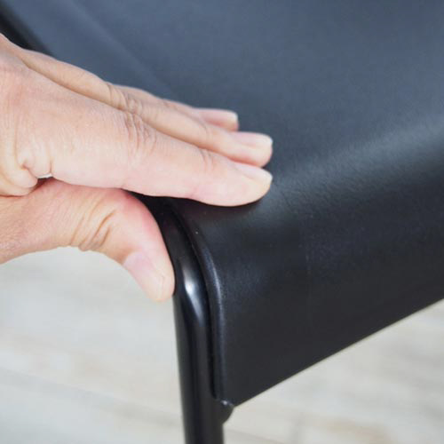 背と座面がPP樹脂製で汚れてもお手入れしやすいミーティングチェア。スチールのループ脚で安定感があります。