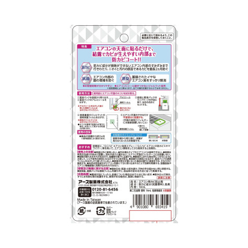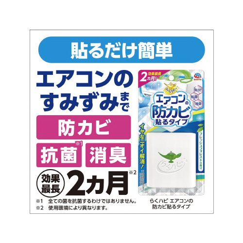 エアコンの天面に貼るだけでエアコン内部のすみずみまで防カビ・抗菌・消臭(※全ての菌を抗菌するわけではありません)