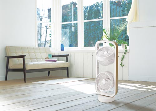 2連の独立式ファンなのでファン毎に操作が可能。お部屋の空気循環にも便利。サーキュレーターとしてお部屋の空気循環や、暑い季節は扇風機代わりに使うなど、年間を通してお使いいただけます。